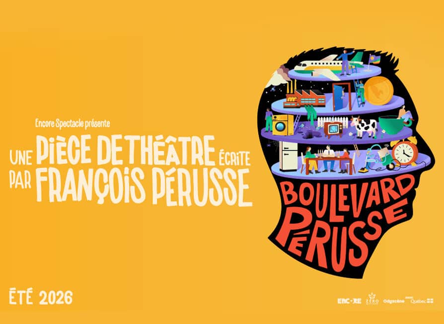 Inédite, cette pièce de théâtre est une véritable extension scénique du « style Pérusse » : bruits ambiants qui jalonnent son univers, situations loufoques et absurdes, dialogues éclatés et dérapages parfaitement assumés. C’est drôle, imprévisible et résolument unique!