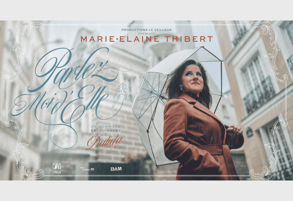 Pour donner suite à la sortie de son plus récent album « 11 bis, rue d’Orchampt », Marie-Élaine Thibert présente « Parlez-moi d’elle », un nouveau spectacle à grand déploiement qui promet d’émerveiller son public. Avec des interprétations puissantes, un décor parisien enchanteur et une sélection de chansons intemporelles, ce spectacle promet d’être une expérience unique et une célébration de l’héritage musical de Dalida.